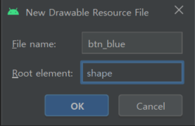 2. ๊ทธ ๋ค์ res > drawable ์์ ์ฐํด๋ฆญ์ ํด New Drawable Recourse File ์ ํด๋ฆญํด btn_blue.xml ํ์ผ์ ๋ง๋ค์.