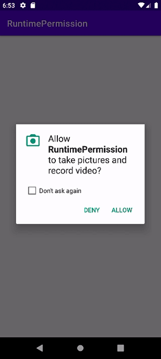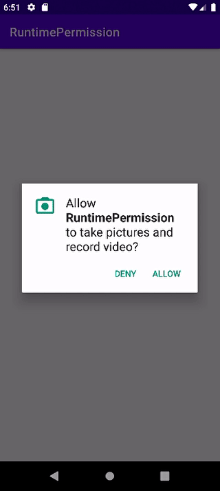 ActivityCompat.requestPermissions(this, new String[]{Manifest.permission.CAMERA}, SINGLE_PERMISSION);
