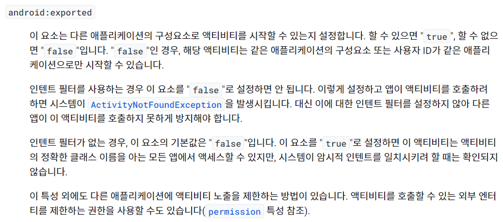 android:exported="true" λλ android:exported="false" λ‘ μ΅μ