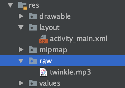 MediaPlayer mp = MediaPlayer.create(this, R.raw.twinkle);