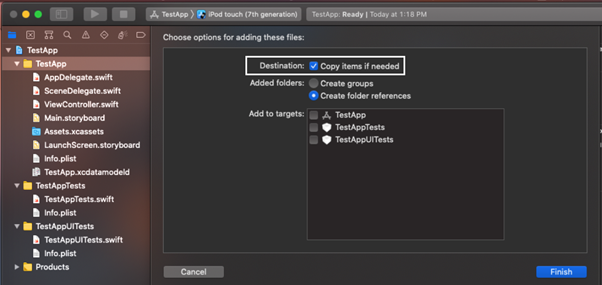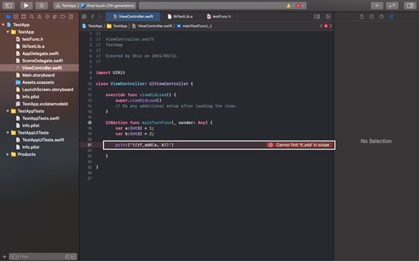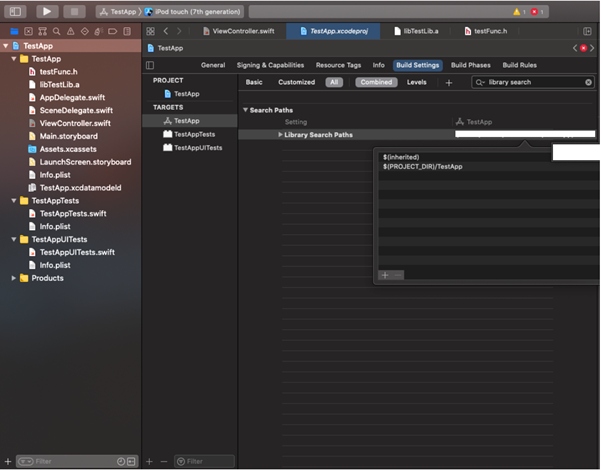 16) Products > libTestLib.a > ์ฐํด๋ฆญ > Show in Finder