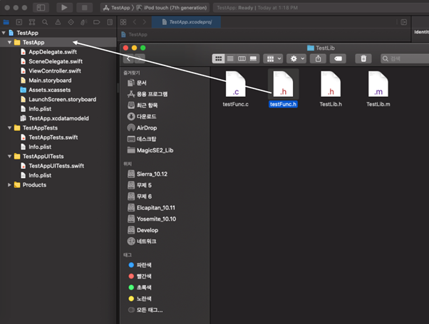 )-Bridging-Header.h ๋ง๋ค์ด์ฃผ๊ณ ,