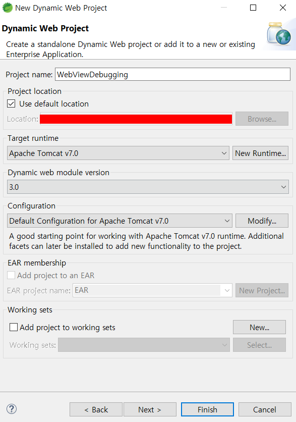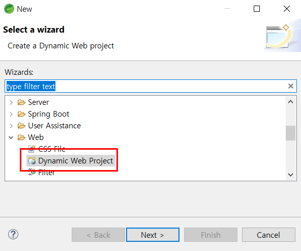 1. Package Explorer์์ ์ฐํด๋ฆญ > New > Other > Dynamic Web Project