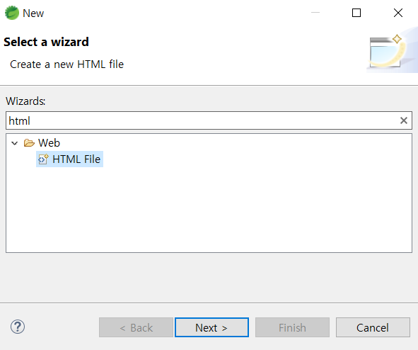 WebContent > New > Other... > html ๊ฒ์ํด ์ถ๊ฐ