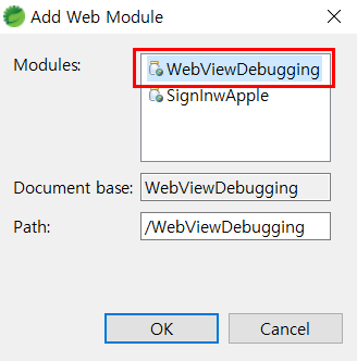 Modules > Web App Module... ๋ฅผ ํด๋ฆญ