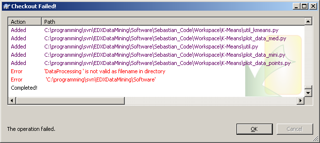 Subversion์ ํ์ผ์ด๋ ํด๋ ์ด๋ฆ์ ๊ณต๋ฐฑ, ๋ง์นจํ๋ฅผ ์ฒ๋ฆฌํ ์ ์์ผ๋ Windows ์์๋ ๊ณต๋ฐฑ์ด๋ ๋ง์นจํ๋ฅผ ์ฒ๋ฆฌํ ์ ์๋ค.