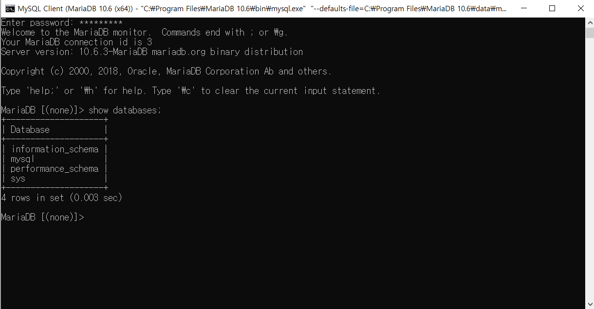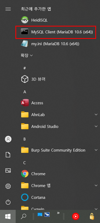 5.1. Windows ์์ ๋ฒํผ์ ๋๋ฌ MySQL Client (MariaDB 10.6 (x64)) ๋ฅผ ์คํ