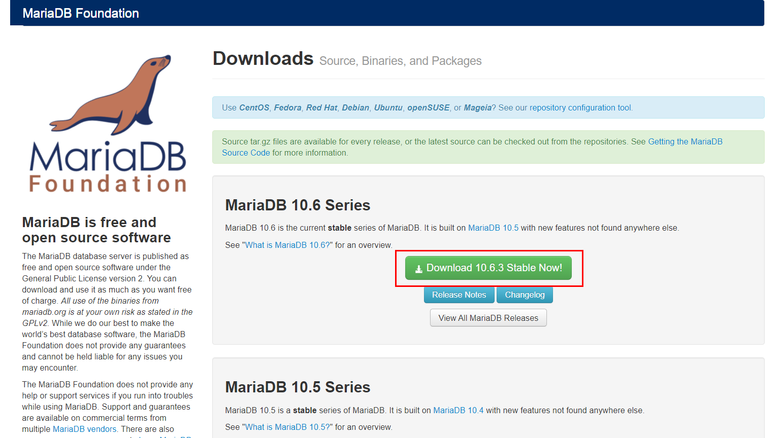 2. MariaDB๋ ๋น ๋ฅธ ์๋๋ก ์ ๊ทธ๋ ์ด๋ํ๊ณ ์์ผ๋ฉฐ 2021๋ 7์ ํ์ฌ ์ต์ ๋ฒ์ ์ 10.6.3์ด๋ค. ๊ฐ๊ธ์ ์ต์ ๋ฒ์ ์ ๋ฐ์.