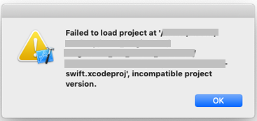 ์๋ฌ(error) failed to load project at '.xcodeproj' incompatible project version ๊ฐ๋ฐ ํ๊ฒฝ(platform) iMac, Xcode 9.2 (9C40b) ์์ธ(cause) Xcode๋ ํ๋ก์ ํธ ๋ด์ ์๋ project.pbxproj ํ์ผ ๋ด์ฉ์ ์ฝ์ด์..