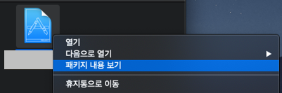 1. .xcodeproj ์ฐํด๋ฆญ > ํจํค์ง ๋ด์ฉ ๋ณด๊ธฐ