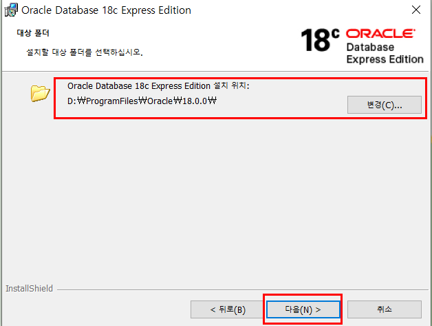 3. ์ค์น ์์น๋ฅผ ์ก์ ์ฃผ๊ณ ๋ค์(N). ๊ธฐ๋ณธ ๊ฒฝ๋ก๋ฅผ ๊ทธ๋๋ ์ฌ์ฉํด๋ ๋์ง๋ง ๋๋ D๋๋ผ์ด๋ธ๋ก ๋ณ๊ฒฝํด ์ฃผ์๋ค.